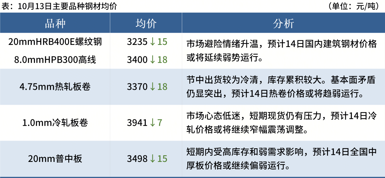 ◎ 10月13日,全國主港鐵礦石成交95.20萬噸,環(huán)比增88.1%;237家主流貿(mào)易商建筑鋼材成交10.60萬噸,環(huán)比增16%。