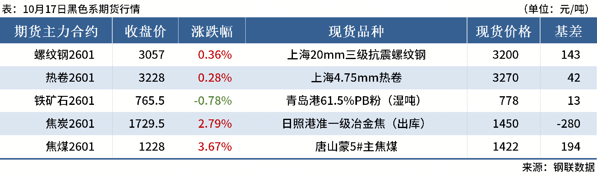 ◎10月17日,全國主港鐵礦石成交100.30萬噸,環(huán)比減16.9%;237家主流貿(mào)易商建筑鋼材成交9.50萬噸,環(huán)比減6.7%。