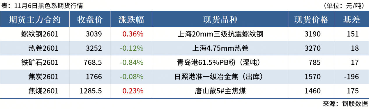 ◎11月6日,全國(guó)主港鐵礦石成交115.40萬噸,環(huán)比增6.1%;237家主流貿(mào)易商建筑鋼材成交11.03萬噸,環(huán)比增17.4%。