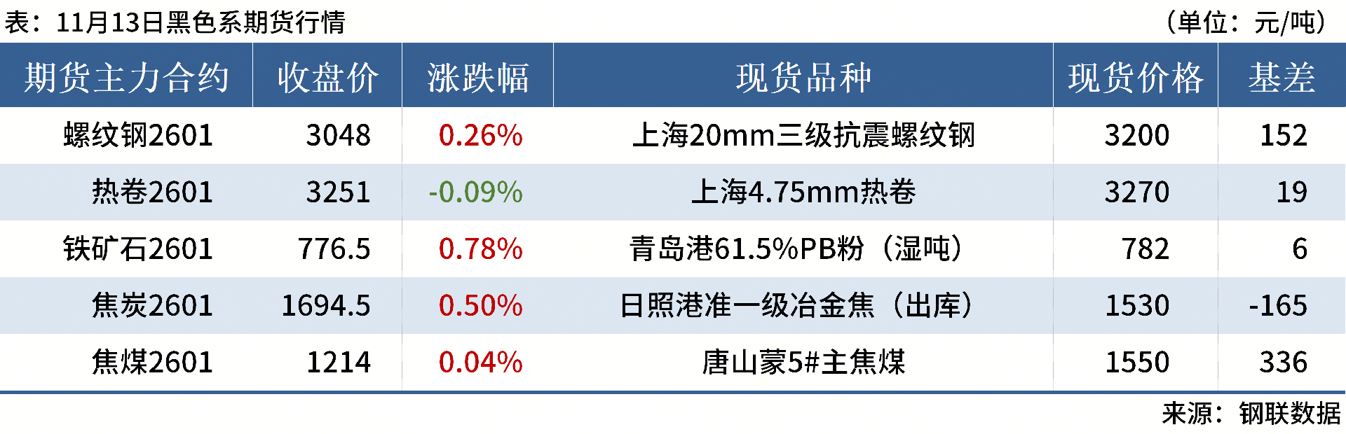 ◎ 11月13日,全國(guó)主港鐵礦石成交105.00萬(wàn)噸,環(huán)比增6.3%;237家主流貿(mào)易商建筑鋼材成交10.62萬(wàn)噸,環(huán)比增16%。