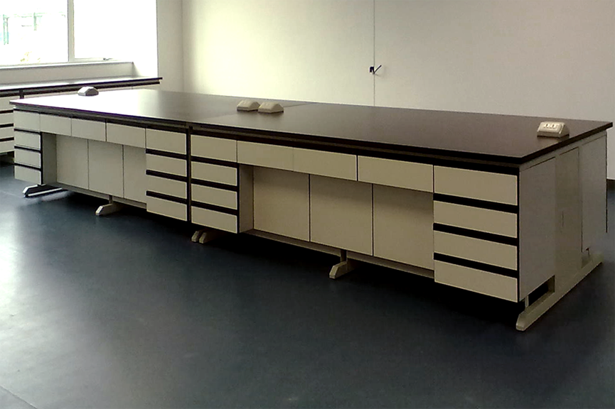 按臺(tái)面分 其臺(tái)面分為三種材質(zhì):環(huán)氧樹脂板、理化板、陶瓷板。隨著實(shí)驗(yàn)室設(shè)計(jì)的發(fā)展進(jìn)步,在臺(tái)面材料的選擇上越來越重視,陶瓷板越來越成為一種流行。