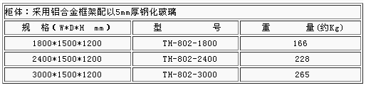 規(guī)格:1800*1500*1200 (W*D*H mm) 型號:TH-802
