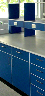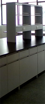 組成構(gòu)件 1、臺(tái)面板: 臺(tái)面板采用16mm環(huán)氧樹(shù)脂板。 2、柜體: 柜體采用18mm厚國(guó)家一級(jí)三聚氰胺雙貼面中密度成型板制作。柜門(mén)及抽屜面采用2mm厚PVC封邊條封邊,所有封邊連接處均做圓弧過(guò)渡處理。