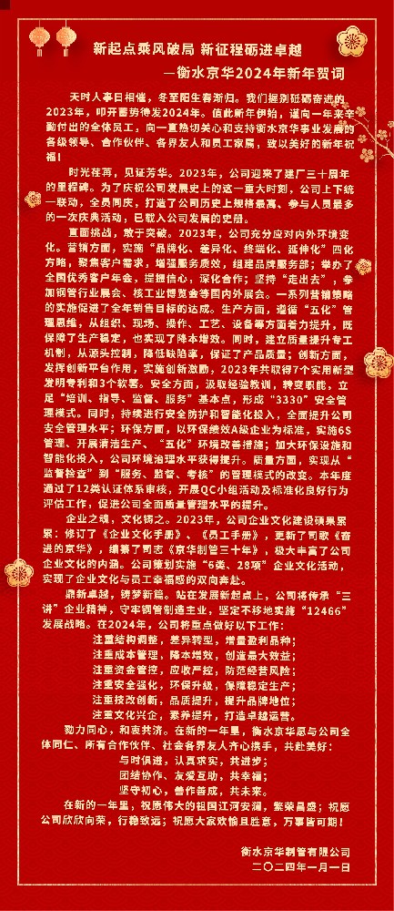 不負(fù)春光起好步 奮楫爭(zhēng)先開(kāi)新局衡水、鄭州、日照京華舉行新春團(tuán)拜會(huì)龍騰萬(wàn)象更新,春華漸濃人間。為立足新起點(diǎn),錨定新目標(biāo),增強(qiáng)合作凝聚力,2024年3月,衡水、鄭州、日照京華先后在鄭州、長(zhǎng)沙、南昌、杭州、合肥、無(wú)錫舉辦了新春團(tuán)拜活動(dòng)。公司領(lǐng)導(dǎo)團(tuán)隊(duì)與各區(qū)域經(jīng)銷(xiāo)商、行業(yè)專(zhuān)家等歡聚一堂,滿懷美好憧憬,共同邁進(jìn)充滿挑戰(zhàn)和機(jī)遇的新征···